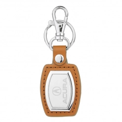 Leather With Nickel Accent Keychain