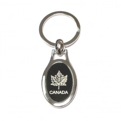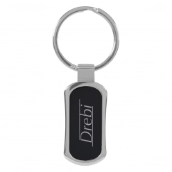 Oval Black & Chrome Metal Keychain