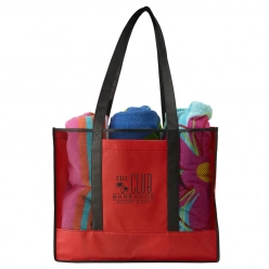 Non-Woven Beach Bag with Mesh Accent Panels - 15" x 18"