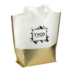 Metallic and Laminated Tote with Webbed Handles - 14" x 19.5"