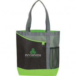 Tri-Tone Non-Woven Tote Bag w/ Mesh Pocket - 14.5" x 15.75"